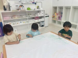 こんにちは!RuRi村上保育園です♬ 今日は室内で遊んでいる様子をお届けしたいと思います🎶 室内ではボールで遊んだり、大きな画用紙に絵を書いたり、滑り台でニコニコ遊んでいます☺️