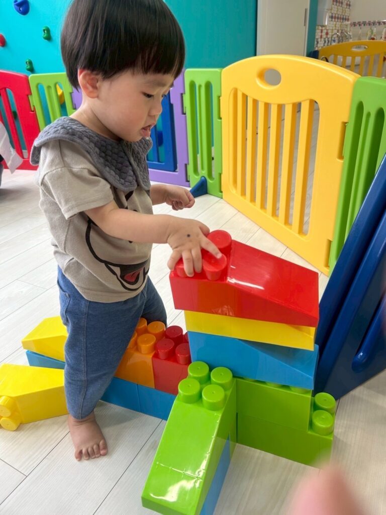 大きなブロックでは動物を作って乗ってみたり、みんな夢中になり楽しく遊べました!