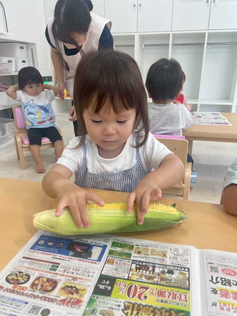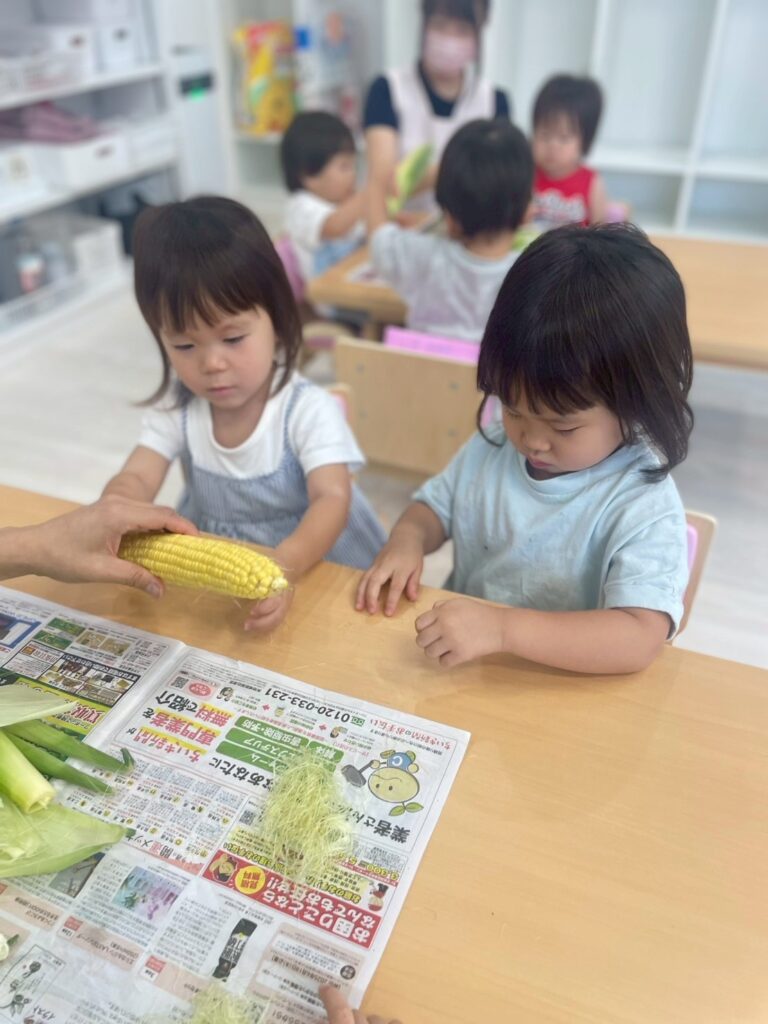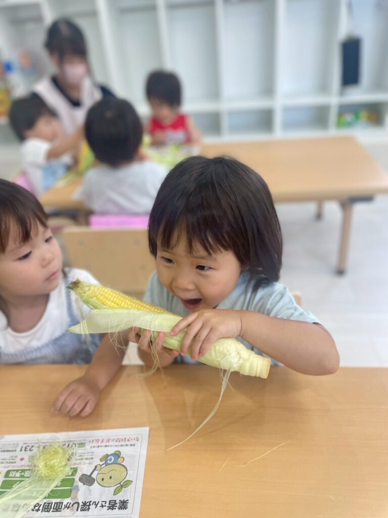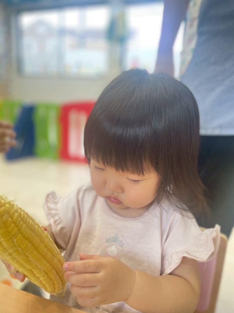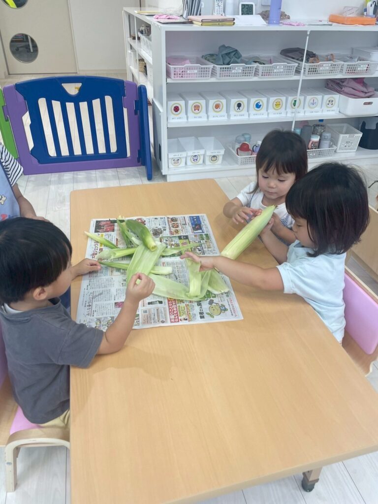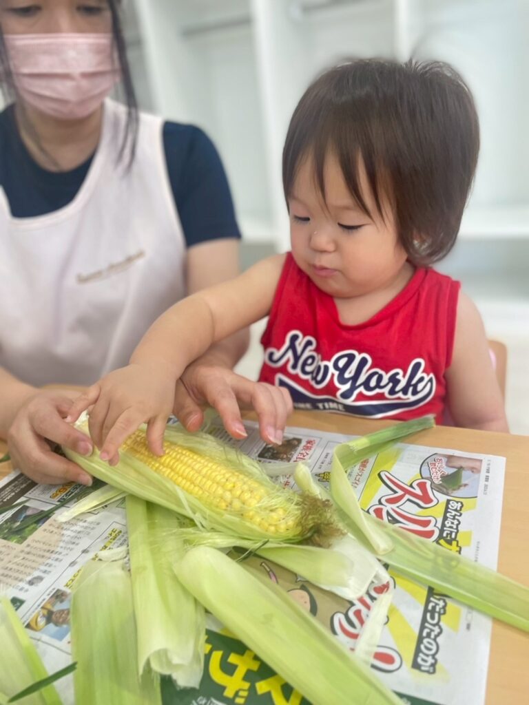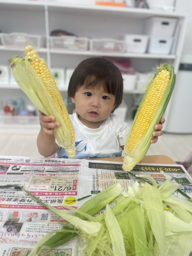🌽食育🌽 7月 25, 2025 最終更新日時 : 7月 25, 2025 web_operator こんにちは!RuRi村上保育園です🎶 先日食育を行いとうもろこしの皮むきをしました💡 みんな一人ひとり手に持って「なにこれ」、「大きいね」等、話をしながら皮むきを楽しみました🥰 食事に出てきたとうもろこしはとても甘くてみんなもよく食べました♪
