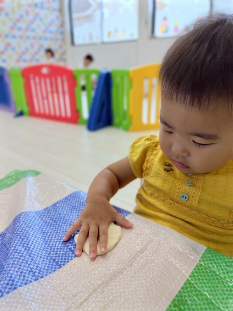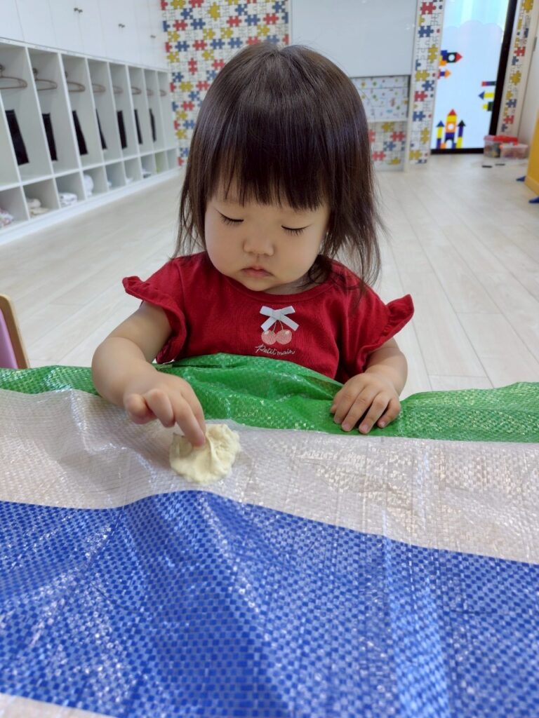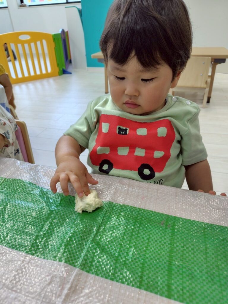 自由に遊んでいると、小さくちぎったり、手のひらでぺったんとつぶして遊ぶ事ができました🥰